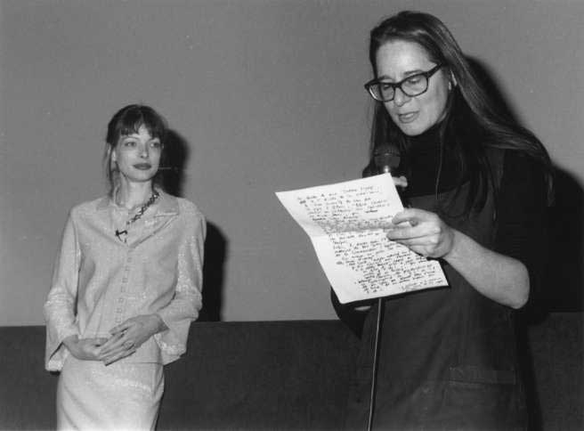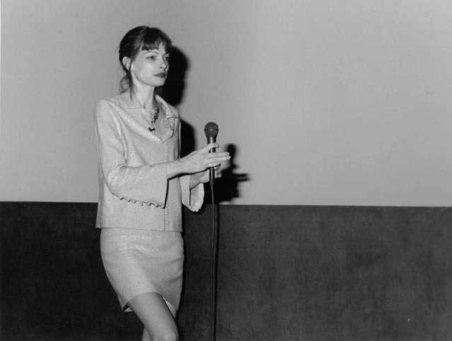 During Dec. 1996 and Jan. 1997, Zoë cut up much of Edouard De Laurot's original film footage from the 1960s-70s into a silent film to present his work. This film was shown, with commentary by Zoë, in Paris in Feb. 1997, days after she ended her marriage to me and relocated in France with a new lover (who had lived with us for the past five months). These photos of her appearance were recently sent to me by Nicole Brenez of Cinémathèque.
